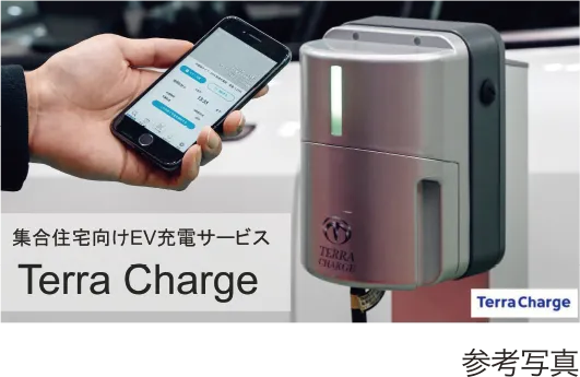 未来を見据えた、住まいの新基準。駐車場には、先進のライフスタイルに答えるEV車専用の充電設備を設置。スマートフォンアプリとクレジットカードを使って簡単に充電・決済が可能です。
