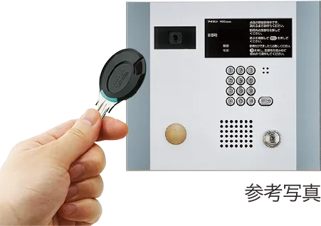 エントランスの集合玄関機(オートロック)は手で直接操作することなく、リーダーにキーヘッドをかざすだけで解錠できるシステムです。
