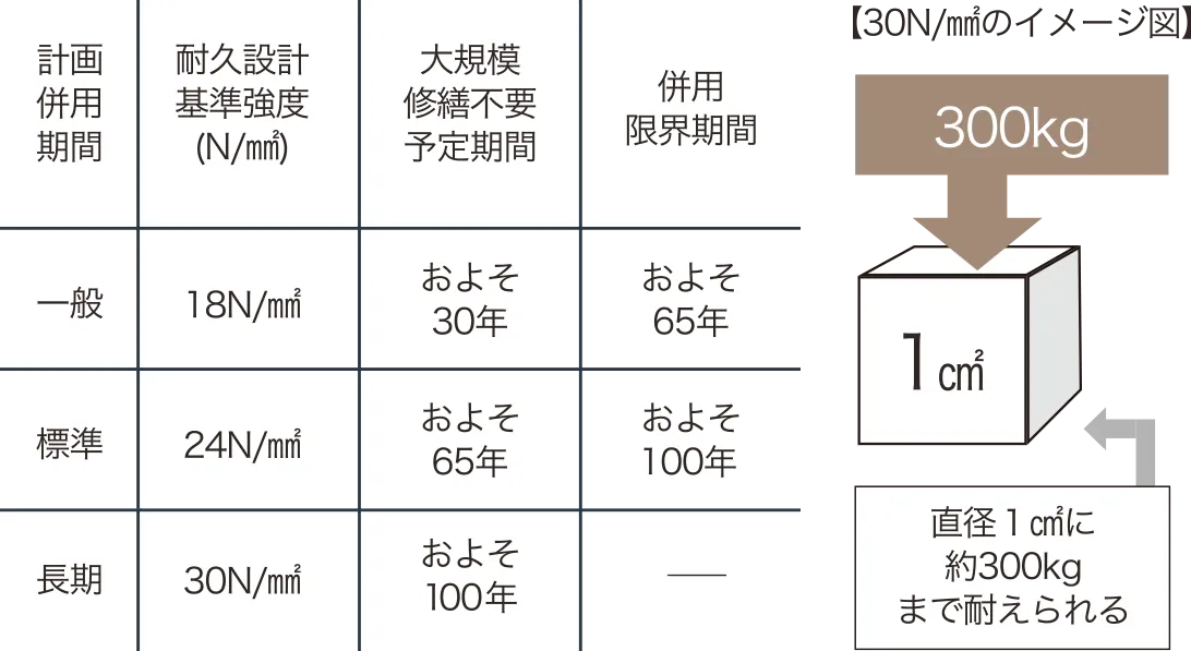 ■コンクリート品質基準強度と構造体の耐久年数