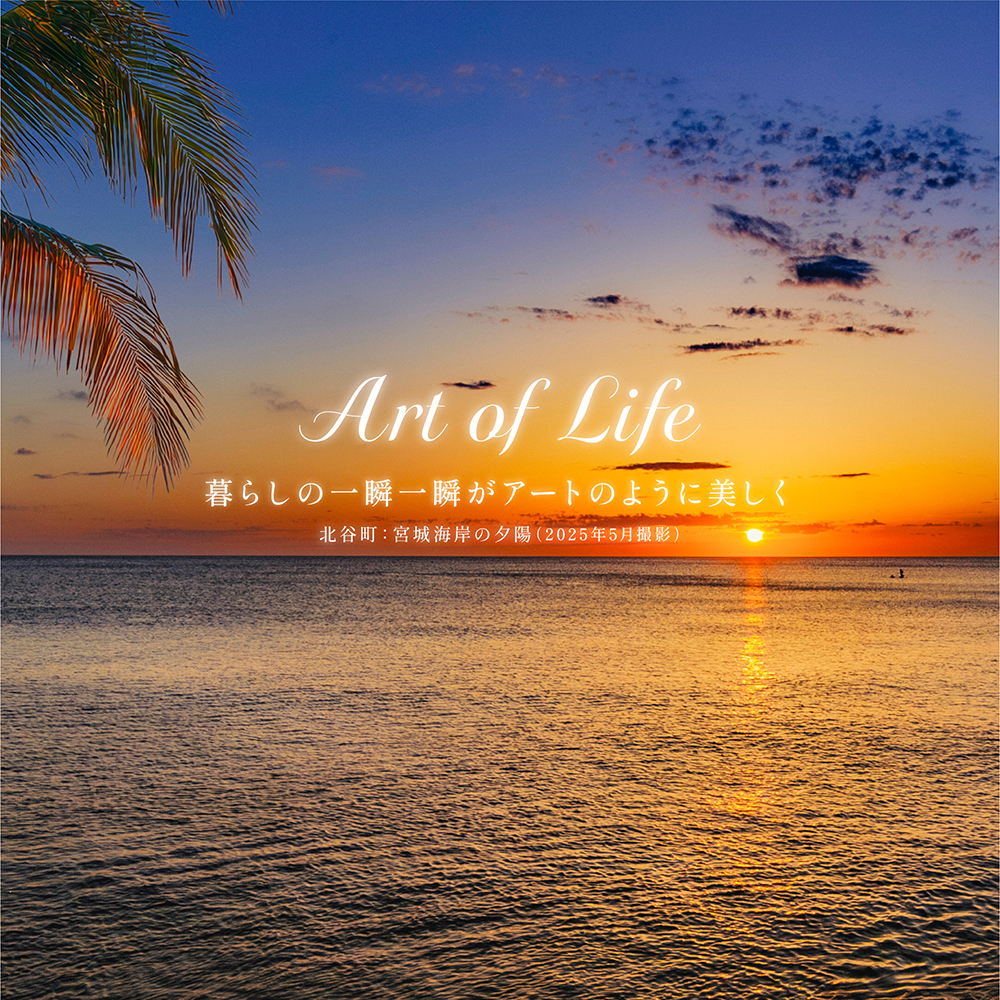 椰子の葉が風に揺れ、陽光が海と空を照らす、