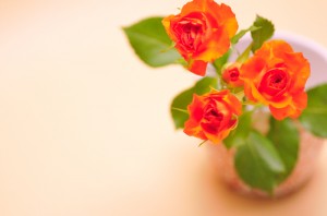 玄関マットを花柄の明るいものにする、赤やオレンジ色の花の絵を飾る、など。