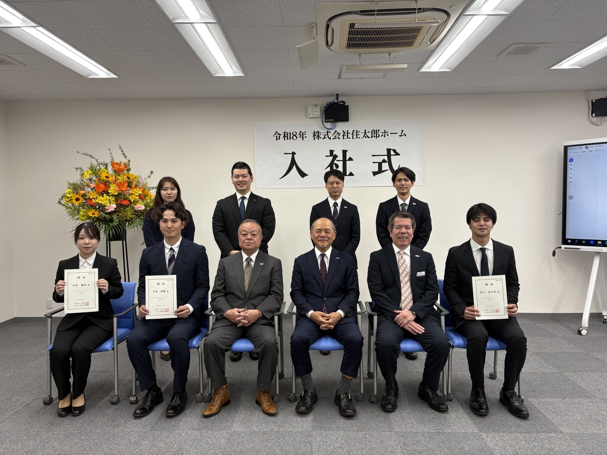 住太郎ホームでは、4月1日に令和8年入社式を執り行い、フレッシュな新しい仲間を迎えました。