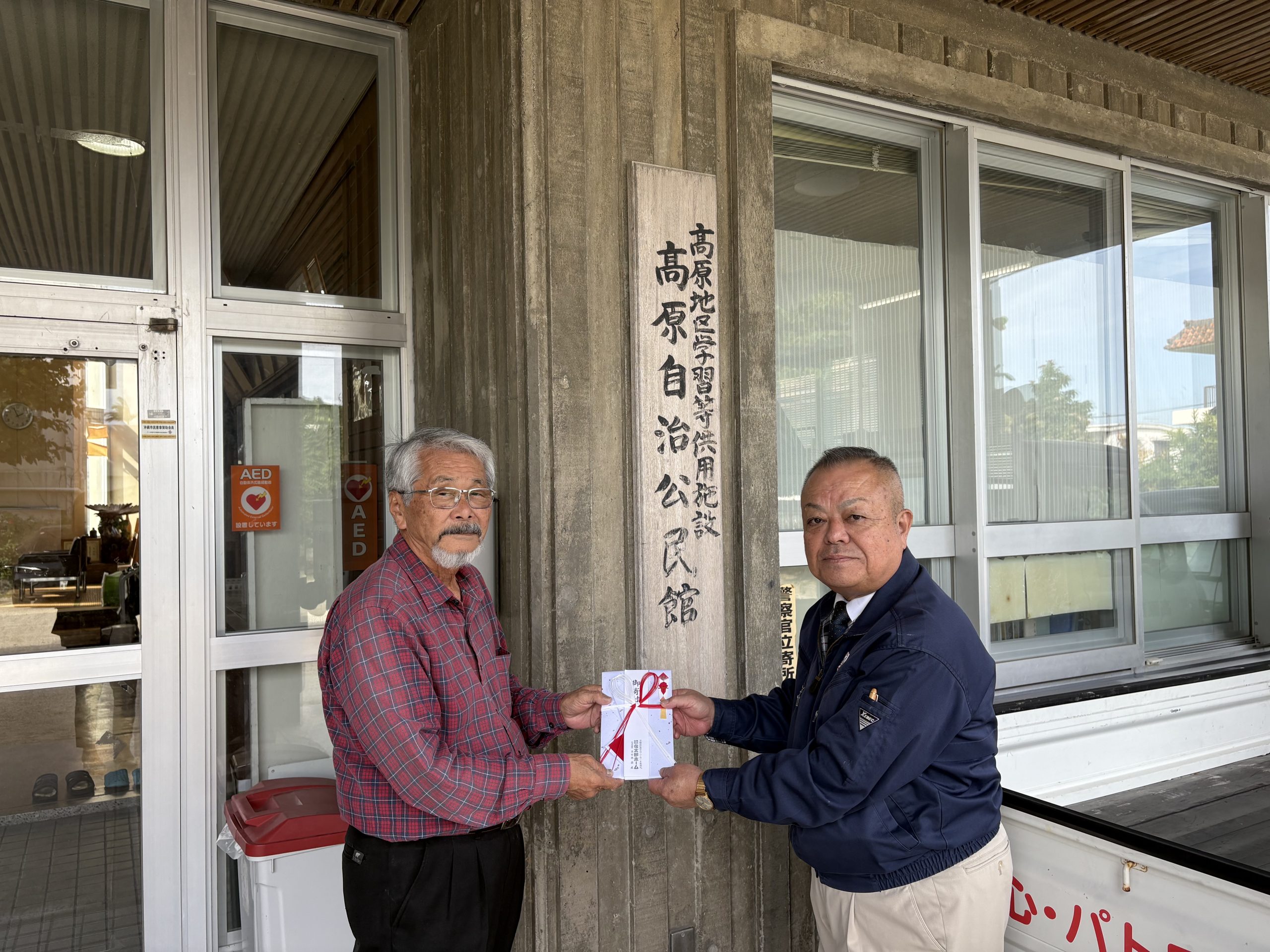 このたび住太郎ホームは、山内自治会・高原自治会へ寄付を行いました。