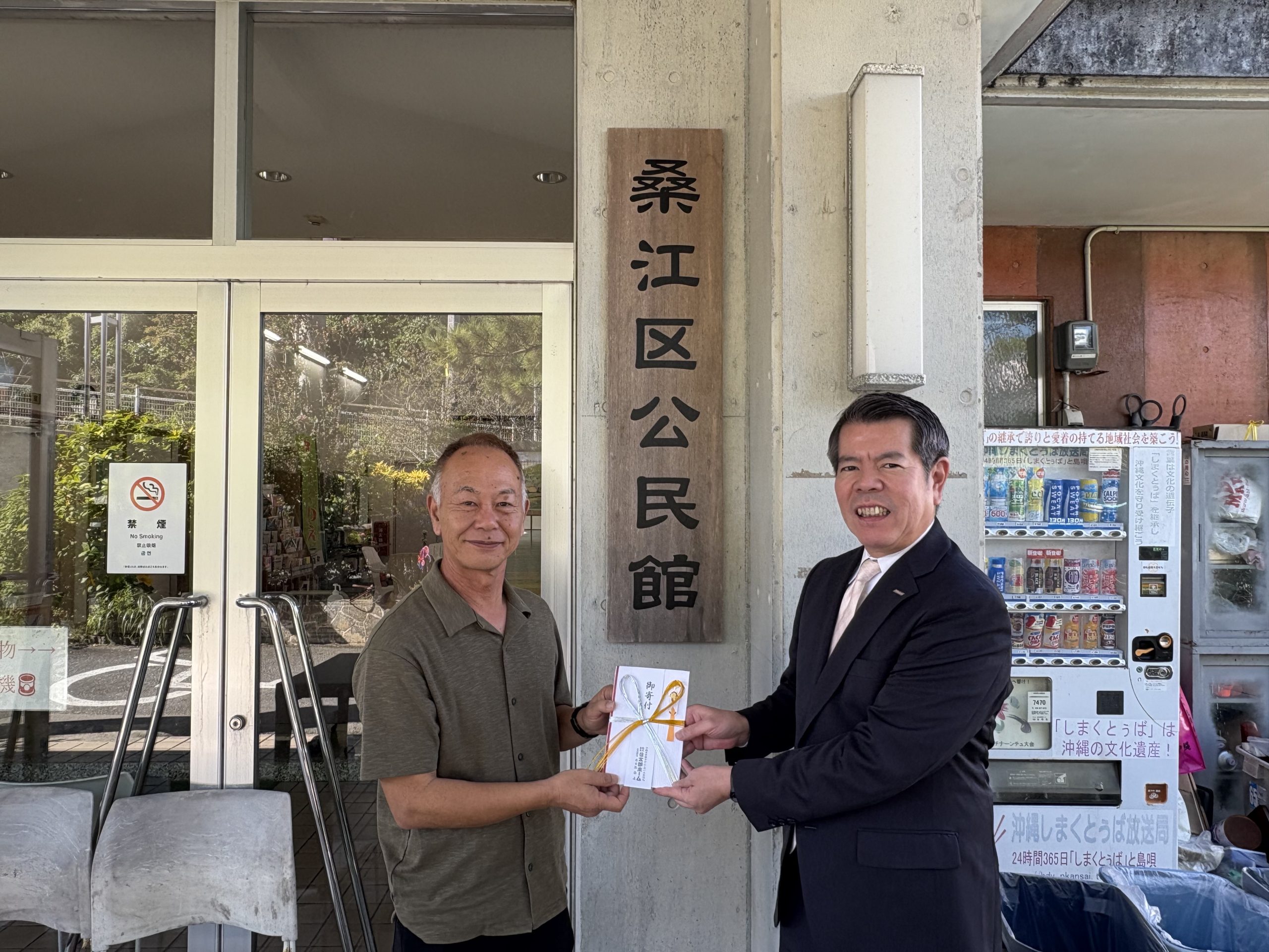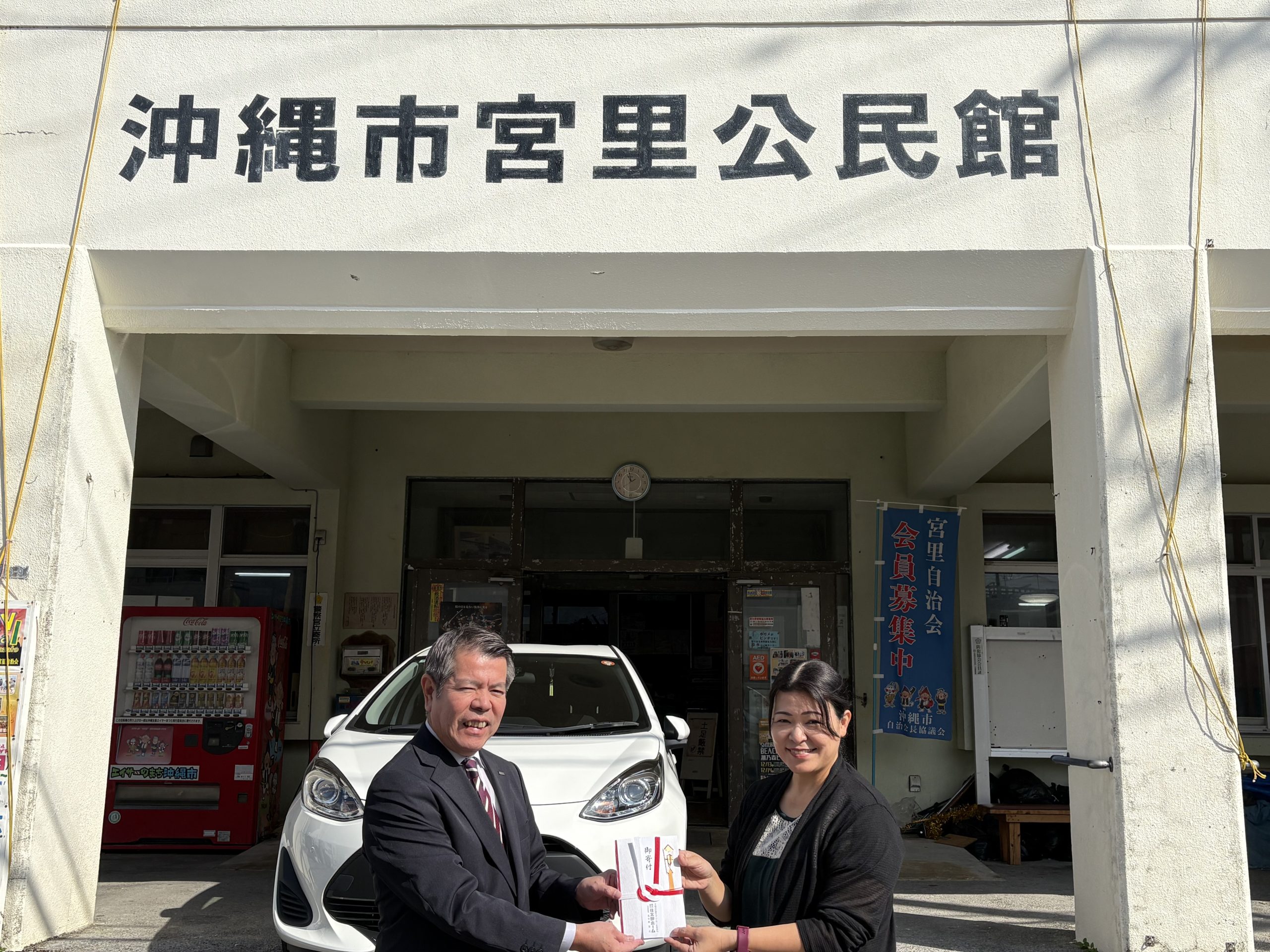 住太郎ホームでは、桑江自治会・上勢区自治会・宮里自治会へ寄付を行いました。